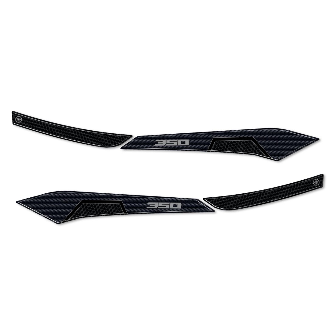 Harz-Klebeschutz für Beifahrergriffe Honda Adv350 2022-23 . Exklusiv - Labelbike®. Kleber für Griffe HERGESTELLT IN ITALIEN hergestellt aus Harz mit 3D-Effekt. Grafiken in Simil Carbon und Schwarz mit Schrift 350. Selbstklebende 3D-Gel-Rückenprotektoren.