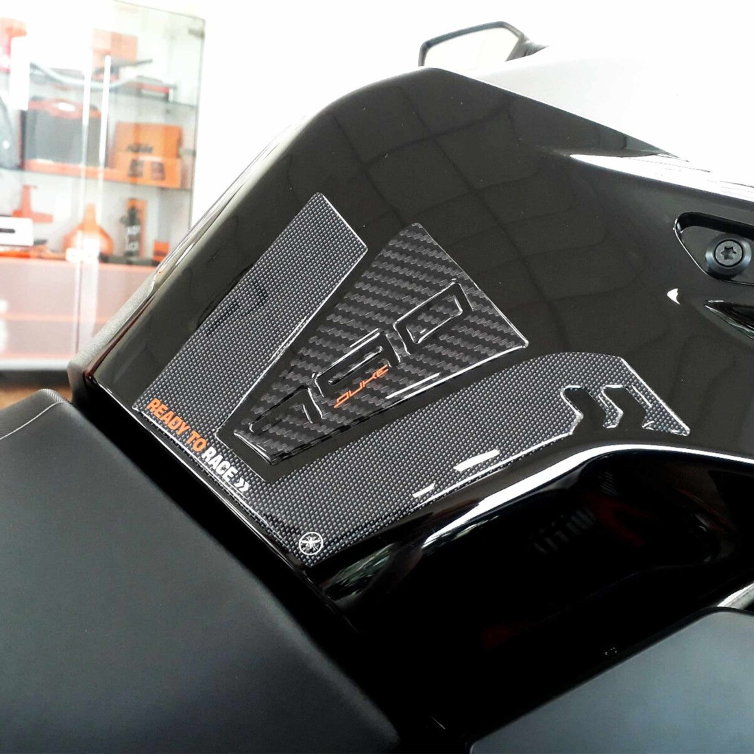- Die Tankaufkleber, die Sie kaufen möchten, sind aus Carbon-Simil und mit Grafiken wie auf dem Foto.