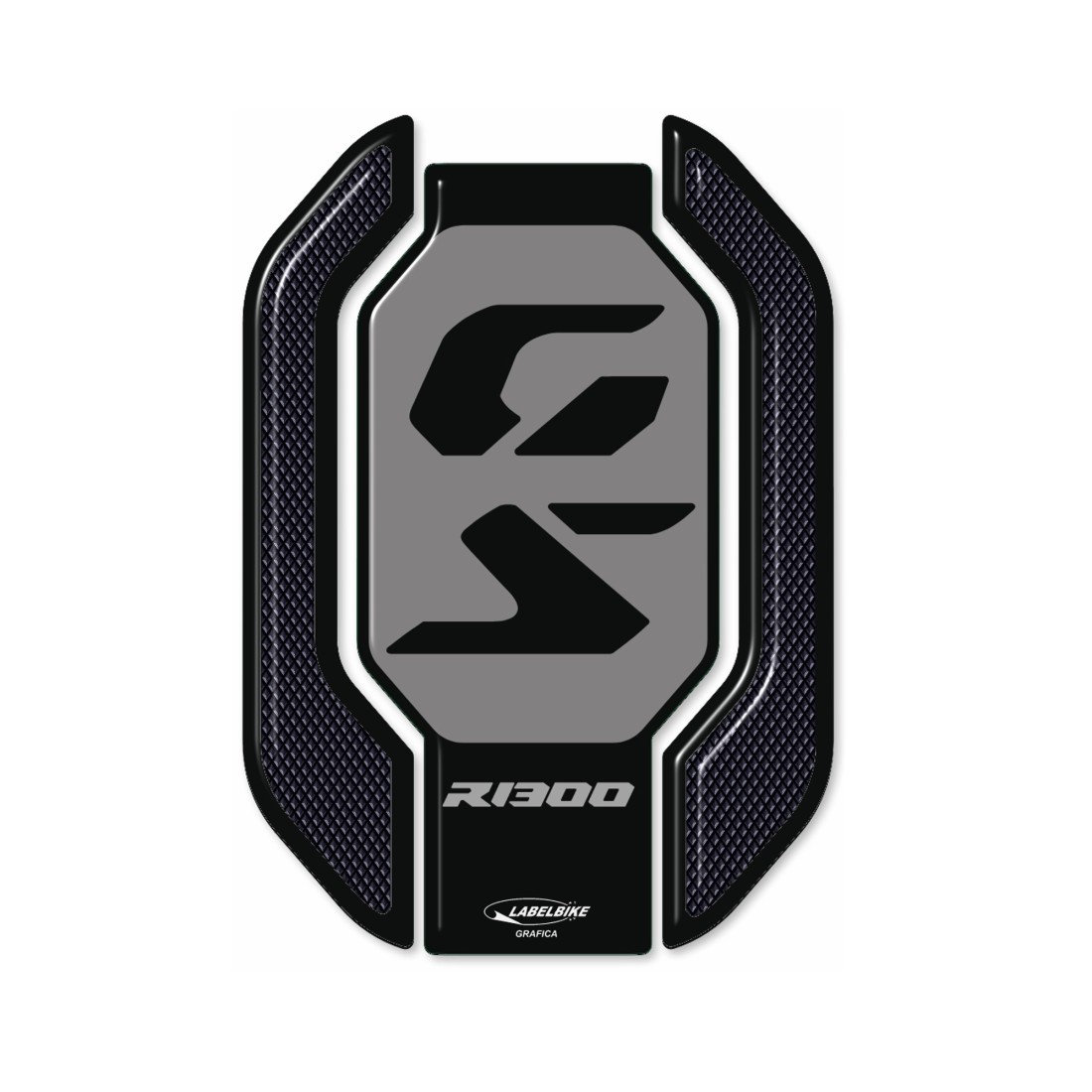 Tankschutzaufkleber aus Harz mit 3D-Effekt. Harz-Klebeschutz mit Anti-Rutsch-Grafik und GS R1300-Schriftzug.