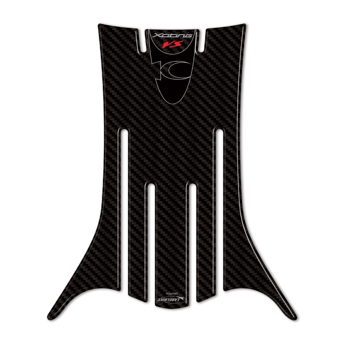 Basisgrafik mit Carbon-Effekt und Xciting VS-Schriftzug. Harz-Klebstoff mit 3D-Effekt, Exklusives Labelbike® MADE IN ITALY.