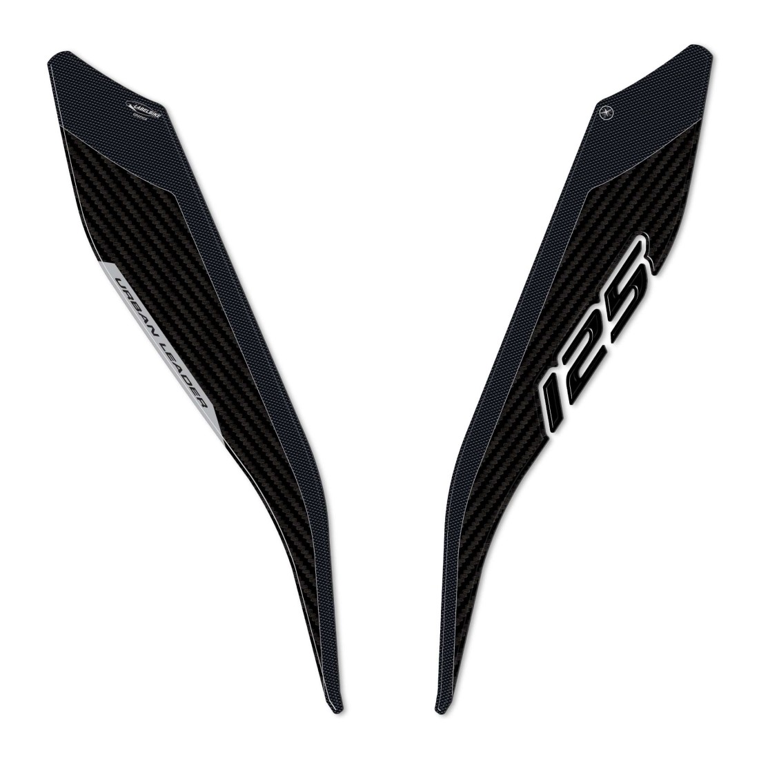 3D-Klebeschutz kompatibel mit Honda Forza 125 Maxi Scooter 2021-2023. Harz-Aufkleber-Kit zum Schutz und zur Dekoration Ihres Forza 125. Selbstklebende Schutzvorrichtungen Hergestellt in Italien, exklusiv von Labelbike für die Vorderseite der Forza 125, aus Harz mit karbonähnlicher Grafik und Urban Leader und 125 Schriftzug.
