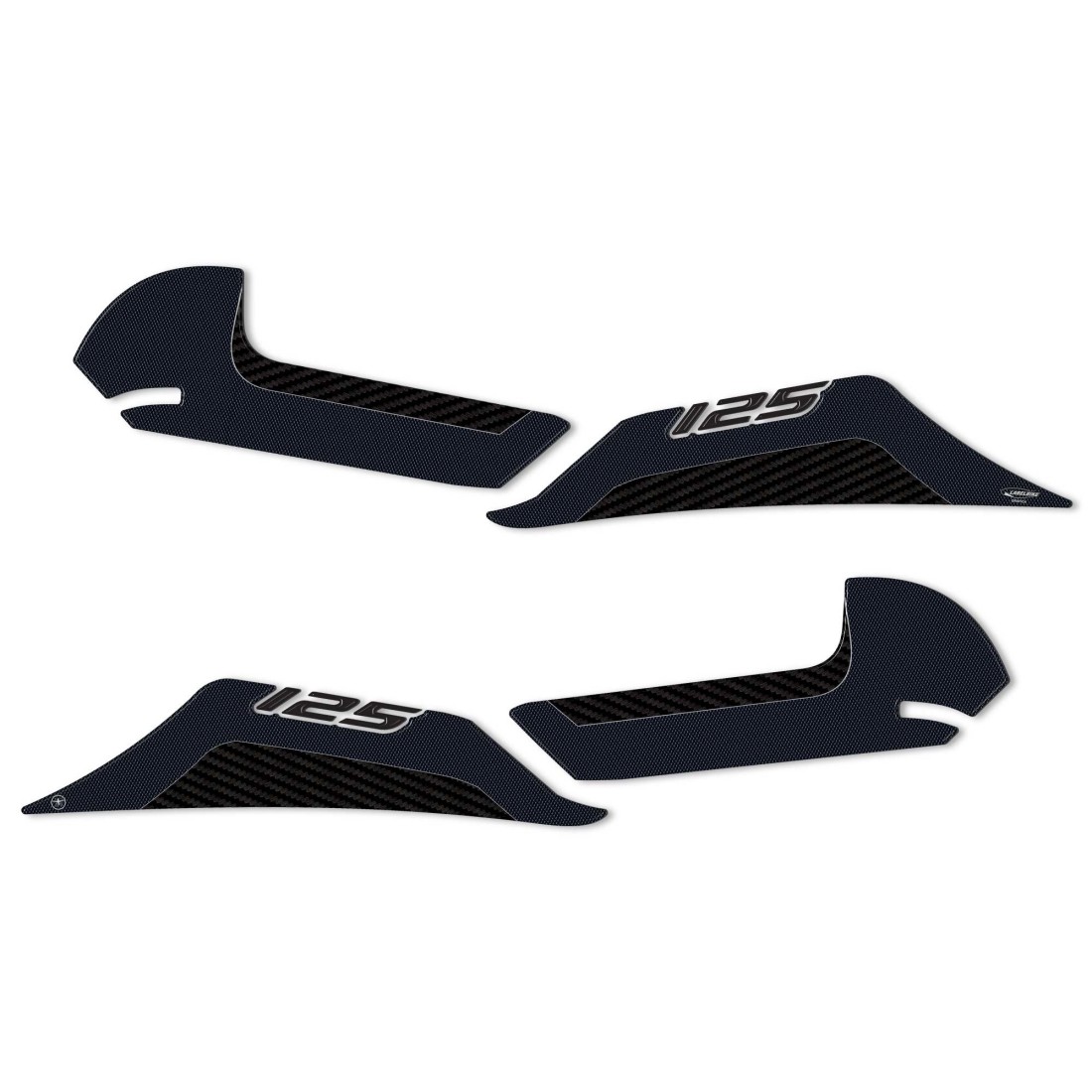 Klebeharzbeschichtete Protektoren für zentralen Trittbrettbereich und den Mitteltunnel. Grafiken mit Simil Antiskid-Basis und Carbon-Effekt. Aufkleber mit 3D-Effekt aus Harz, Exklusive Labelbike® MADE IN ITALY.
