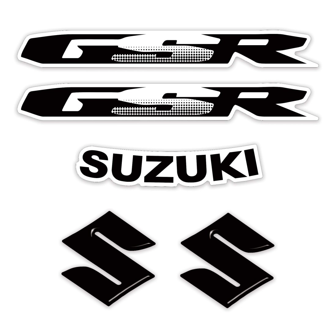2 schwarze 3D-HARZ-"S"-Schriftzüge für den Tank + 2 schwarze "GSR"-Schriftzüge auf transparentem Hintergrund für die Heckseiten + 1 schwarzer "SUZUKI"-Schriftzug auf transparentem Hintergrund für das Heck Beständig gegen Witterungseinflüsse und UV-Strahlen MADE IN ITALY KLEBER / AUFKLEBER KOMPATIBEL für SUZUKI GSR 600