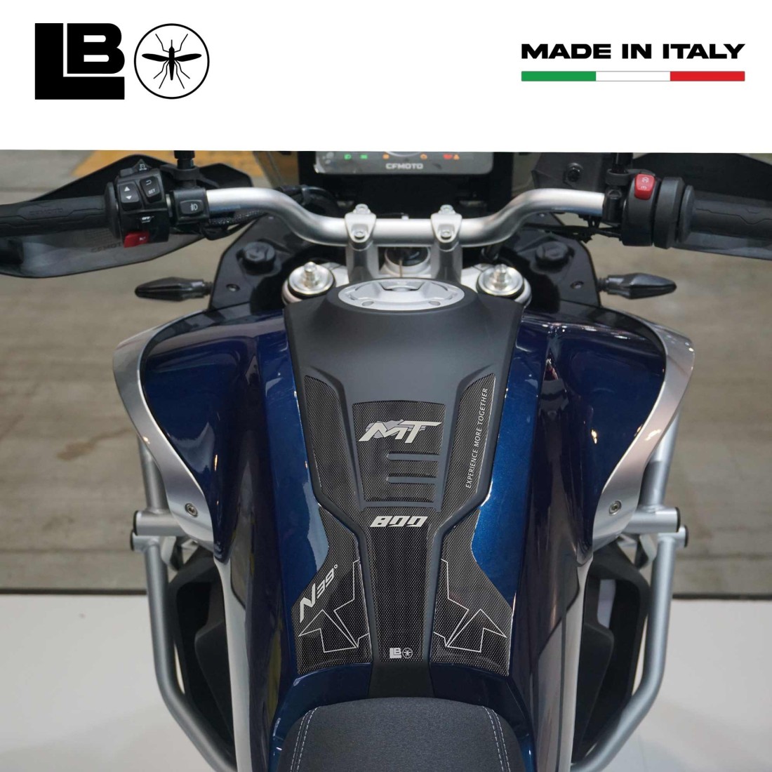 Harz-Klebe-Tankschutz für CFMOTO 800 MT-Motorradtank ab 2024. 3D-Gel-Harz-Kleber Exklusiv - Labelbike®. Klebender Motorradtankschutz ideal für MT 800.
