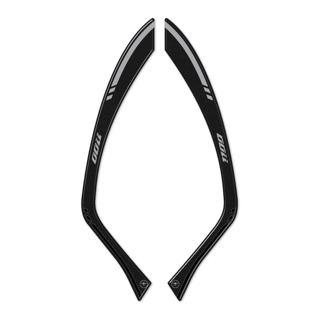 Aufkleber für Beifahrergriffe aus Harz mit 3D-Effekt. Paar für linke und rechte Seite Aufkleber aus Harz mit Grafik im Carbon-Look (Karbon-Effekt) und 1100er-Schriftzug.