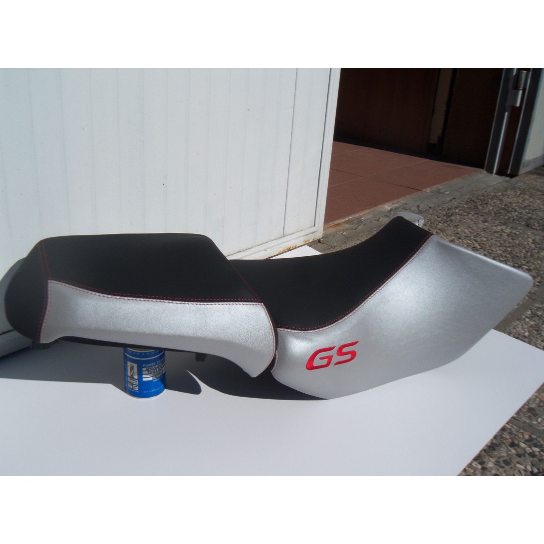 EXKLUSIVER PERSONALISIERTER SITZBEZUG FÜR IHRE BMW R 1200 GS 2008 - 2012 MODELL Rote Nähte - Roter GS-Schriftzug auf beiden Seiten Auch für frühere Modelle erhältlich Dieser Sitzbezug wurde so konzipiert, dass er dank des Materials wasser- und wetterfest ist: SKY RAIN PROOF. ...dass sich unweigerlich das ganze Gewicht nach vorne verlagert, so dass man sich lästigerweise neu auf dem Sattel positionieren muss!!! Deshalb habe ich beschlossen, dieses Problem auf ein Minimum zu reduzieren, indem ich den rutschfesten Teil des Fahrer- und Beifahrersitzes, wie auf dem Foto zu sehen ist, mit einem rutschfesten Teil versehen habe. Der restliche Teil ist grau/silberfarben, um Ihr Motorrad elegant und exklusiv zu machen. Der Sattelüberzug kann mit verschiedenfarbigem Material personalisiert werden und es ist möglich, individuelle Schriftzüge oder Logos hinzuzufügen.
