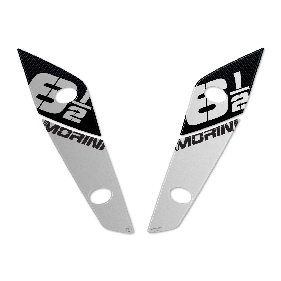 Harz-Klebeschutz für Morini SEIEMMEZZO SCR Motorrad-Kotflügel 2022 - 2024. Zwei Aufkleber für den Bereich des Motorradkotflügels, rechte und linke Seite, aus 3D-Gelharz Exklusiv - Labelbike®. Motorrad-Kotflügelschutz-Aufkleber HERGESTELLT IN ITALIEN aus Harz mit 3D-Effekt. Aufkleber aus Kunstharz mit silberner Metallic-Basis, Grafiken in universeller Farbgebung , ideal für alle Motorradfarben.