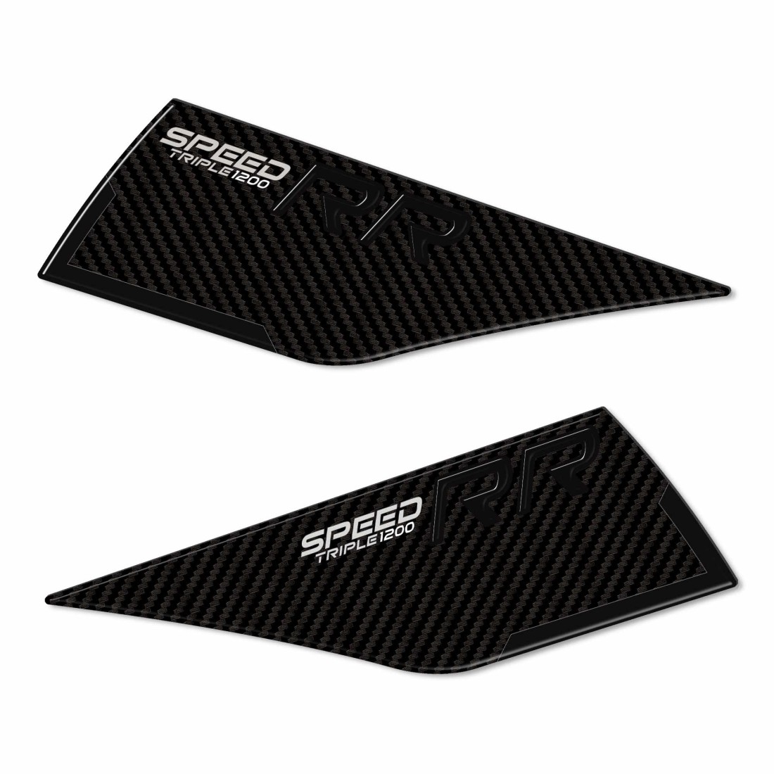 Tankaufkleber aus Kunstharz für das Motorrad Triumph Speed Triple 1200 RR. Paar 3D-Harz-Gel-Aufkleber Exklusiv - Labelbike®. Motorrad-Tankschutzaufkleber ideal für Triumph Speed Triple 1200 RR 2022.