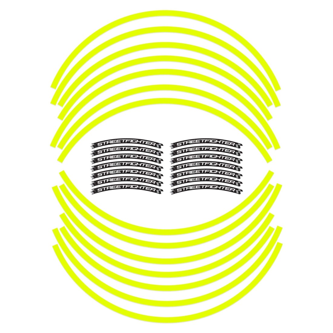 Aufkleber für Motorradfelgenprofil Ducati Streetfighter und V4 Version 2020 - 2021. Exklusive Klebestreifen-Kit - Labelbike®. Motorrad Radaufkleber MADE IN ITALY. Grafiken und Schriftzüge in Fluo-Gelb Streetfighter. Dekorieren und verschönern Sie Ihre Streetfighter DucatiSie sind waschbeständig, wetterfest und UV-beständig.