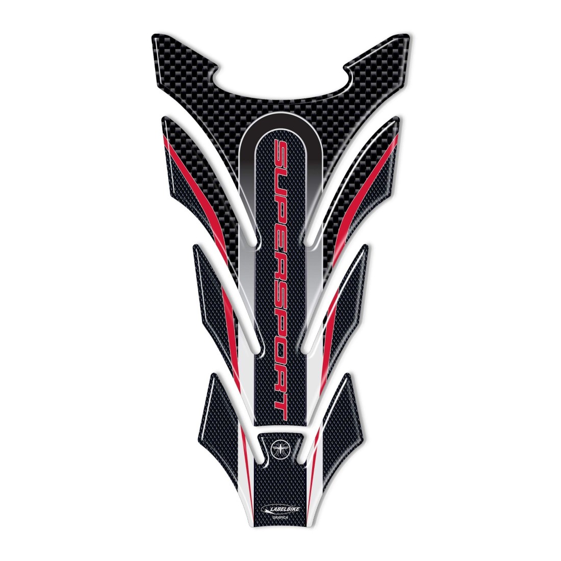 Tankschutzaufkleber kompatibel mit Tank DUCATI SUPERSPORT. Tankschutz aus Resin mit 3D-Effekt mit Carbon-Look-Grafik und rot.