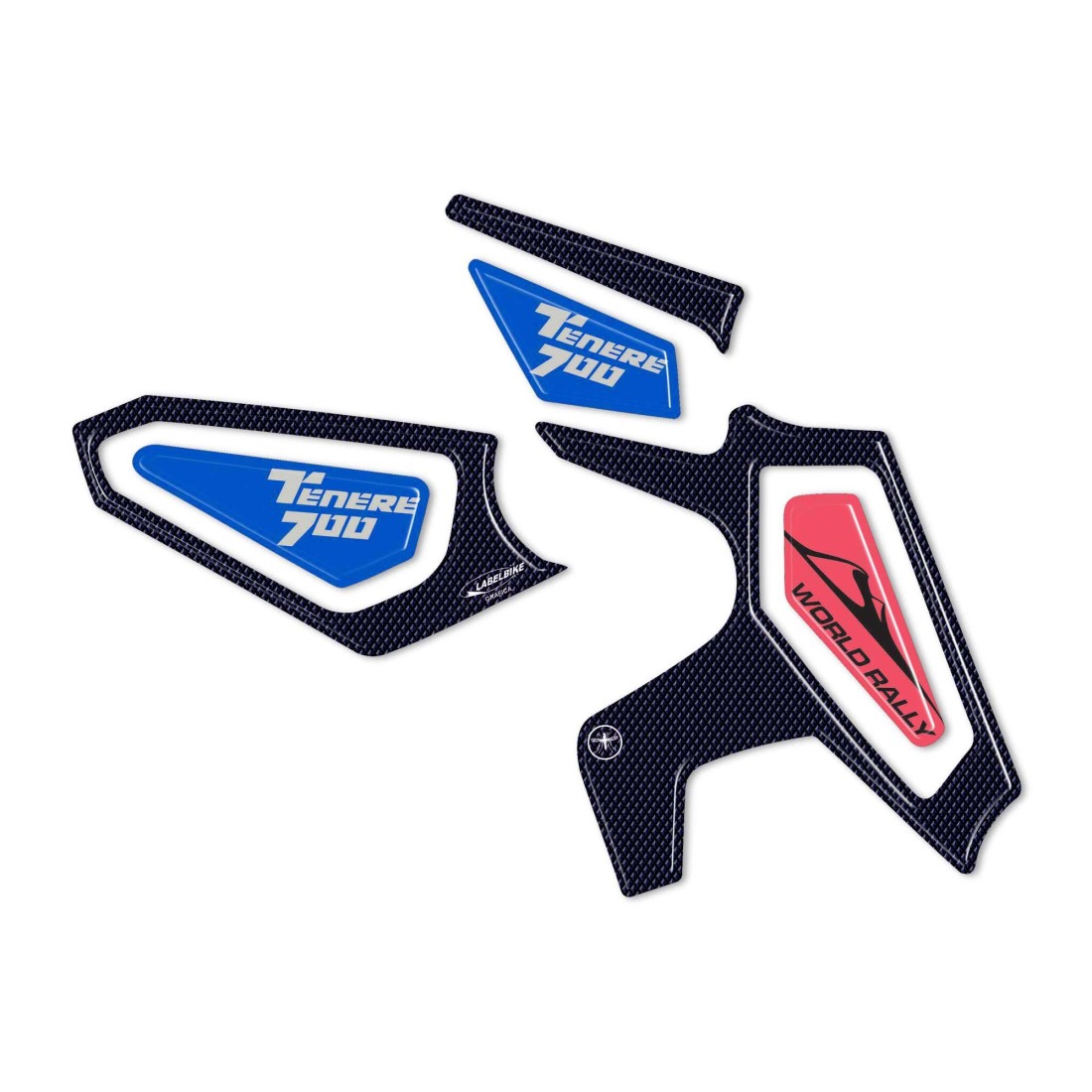 Harz-Klebeaufkleber für Yamaha Tenere 700 World Rally 2023 - 2024 Motorrad-Fersenschützer. Zwei Motorrad Aufkleber für die linke und rechte Seite 3D Harz Gel Fersenpolster Exklusiv - Labelbike. Aufkleber für Motorradseitenfußrasten HERGESTELLT IN ITALIEN Hergestellt aus Harz mit 3D-Effekt. Beständig gegen Waschen, Verwitterung und UV-Strahlen.