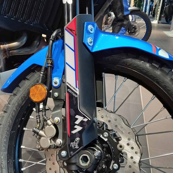 Harz-Klebe-Seitenschützer für Tenere 700 World Rally Motorrad-Kotflügel 2024. Zwei 3D-Gel-Harz-Aufkleber Exklusiv - Labelbike. Selbstklebende Seitenschützer für Vorderradkotflügel IN ITALIEN GEFERTIGT Hergestellt aus Harz mit 3D-Effekt. Grafiken in den Farben der neuen Ausgabe 2023 Welt-Rallye.