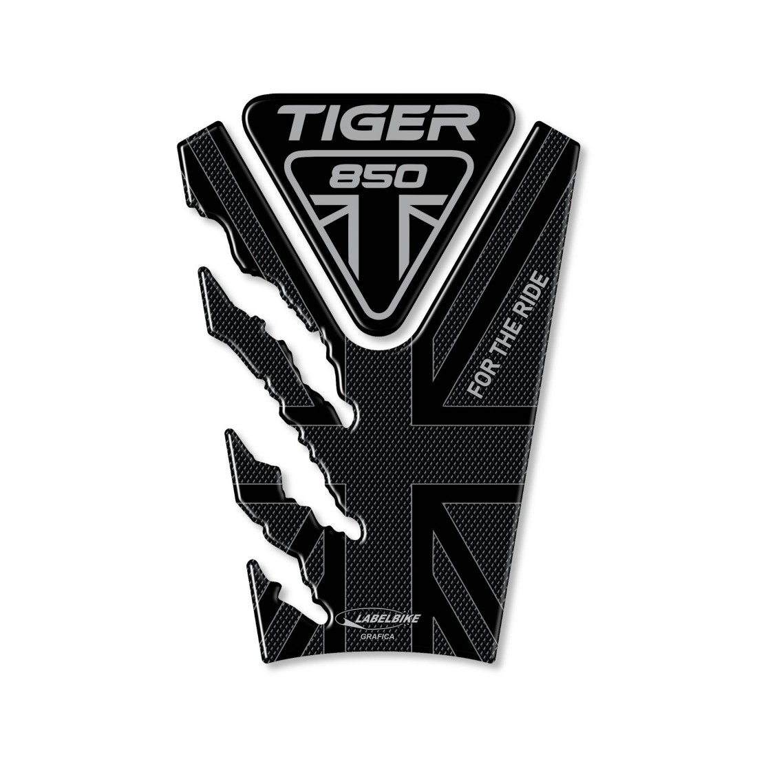 Selbstklebender Tankschutz aus Harz für Triumph Tiger 850 Sport Motorräder 2021 - 2022. Exklusiv - Labelbike. Kleber für den Tank HERGESTELLT IN ITALIEN Hergestellt aus Harz mit 3D-Effekt. Grafik in Simil Carbon mit schwarzer Zierleiste und Schrift Tiger 850. 3D-Gel-Tankschutz-Aufkleber.