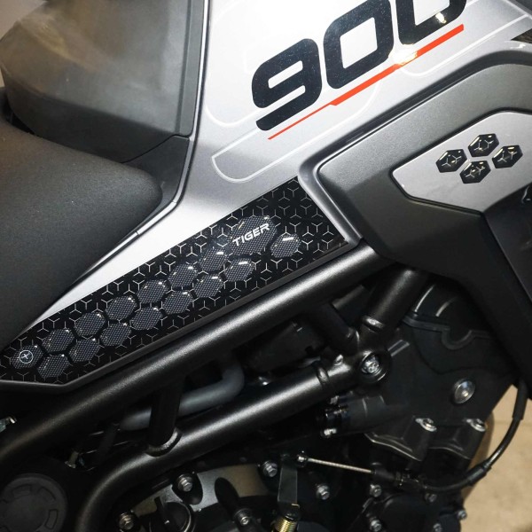 Seitenaufkleber aus Kunstharz für den Tankbereich der Triumph Tiger 900. 3D-Harz-Gel-Aufkleber Exklusiv - Labelbike. Tank-Aufkleber HERGESTELLT IN ITALIEN aus Harz mit 3D-Effekt. Simil Carbon Grafik mit Tiger Schriftzug. Unser Harzaufkleber für Motorräder schützen den Seitenbereich in der Nähe des Tanks Ihres Motorrads vor Stößen und Kratzern, wetterfest und UV-beständig.