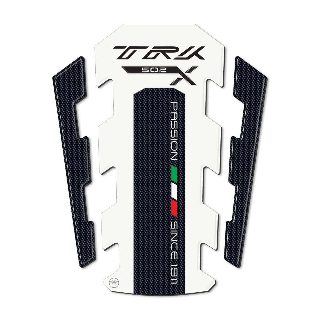 Tankschutz Made in Italy, Exclusive Labelbike, aus Harz mitCarbon Look Weiß und TRK 502 X Schriftzug in Schwarz. Unsere Aufkleber schmücken und machen einzigartig Ihre Benelli TRK 502X, kompatibel mit allen Motorradjahrgängen, schützt vor Stößen und Kratzern und widersteht Witterung und UV-Strahlen.