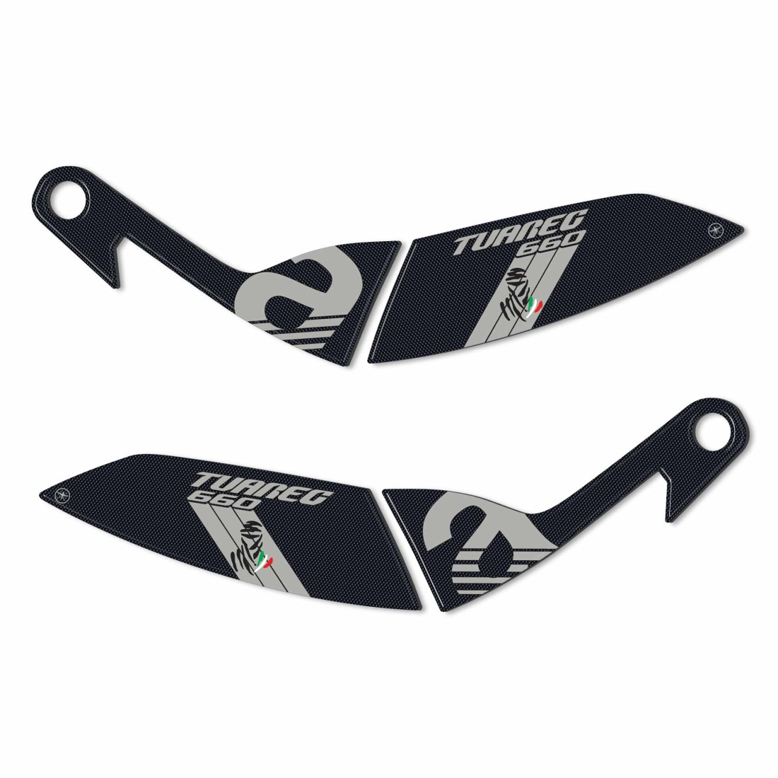 Aufkleber aus Kunstharz für die Handprotektoren des Motorrads Aprilia Tuareg 660 2022-25. Zwei Aufkleber für Motorrad-Handschützer rechts und links in 3D-Harz-Gel Exklusiv - Labelbike®. Klebstoffe für Motorrad-Handschützer HERGESTELLT IN ITALIEN aus Harz mit 3D-Effekt. Universelle Grafiken, 3D-Aufkleber mit rutschfestem Untergrund und Schriftzug TUAREG.