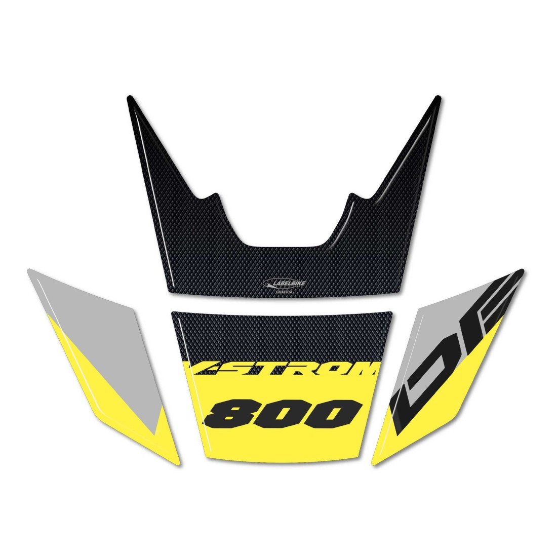 3D-Gelharzaufkleber, kompatibel mit allen Motorradfarben (Petra Gelb; Berlin Grau; Dubai Schwarz). V-Strom 800DE ab 2023.