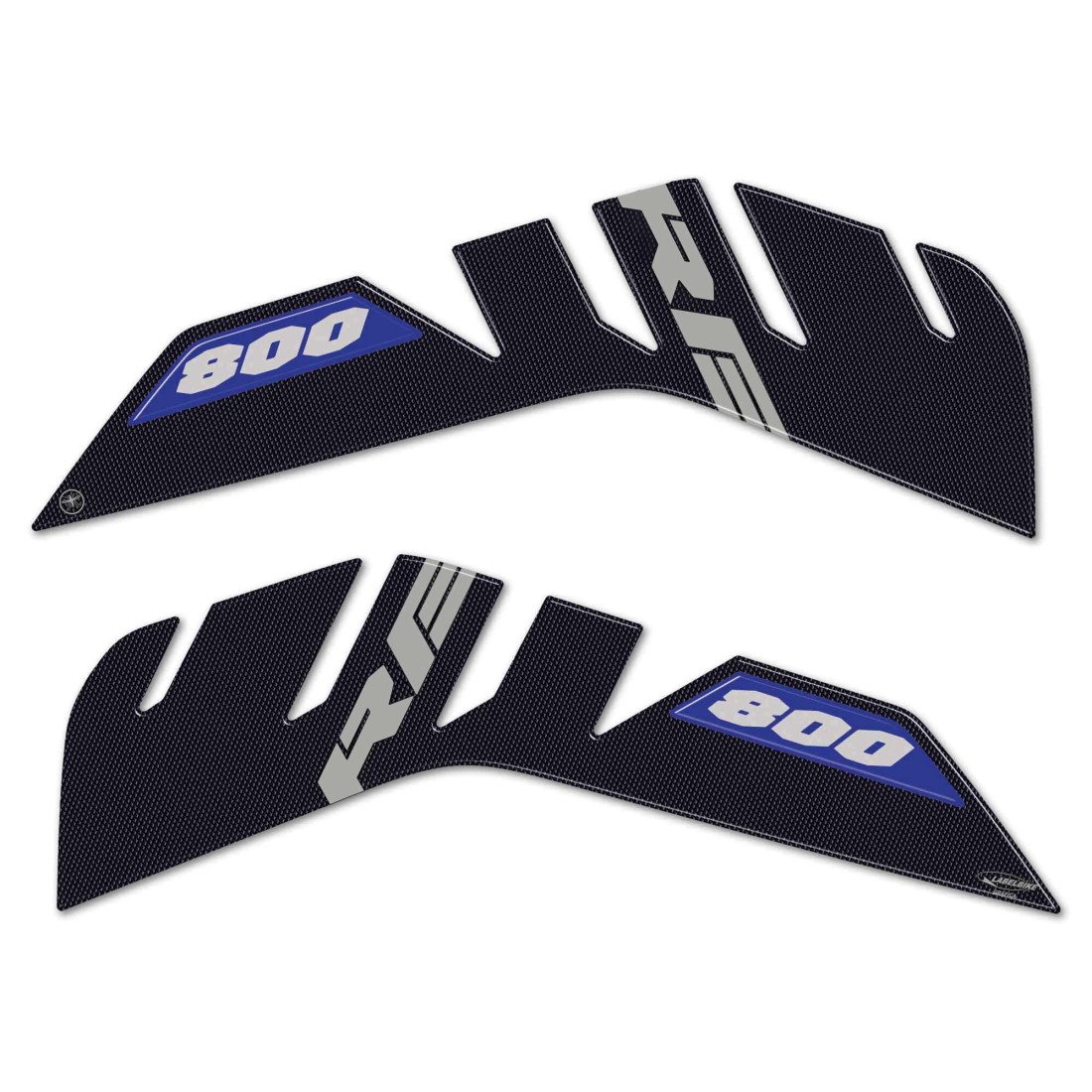 Motorrad Tank Seitenaufkleber aus Harz mit 3D-Effekt. Paar für rechte und linke Seite aus Harz mit Grafik in Blau, Grau oder Grün und Schriftzug 800RE.
