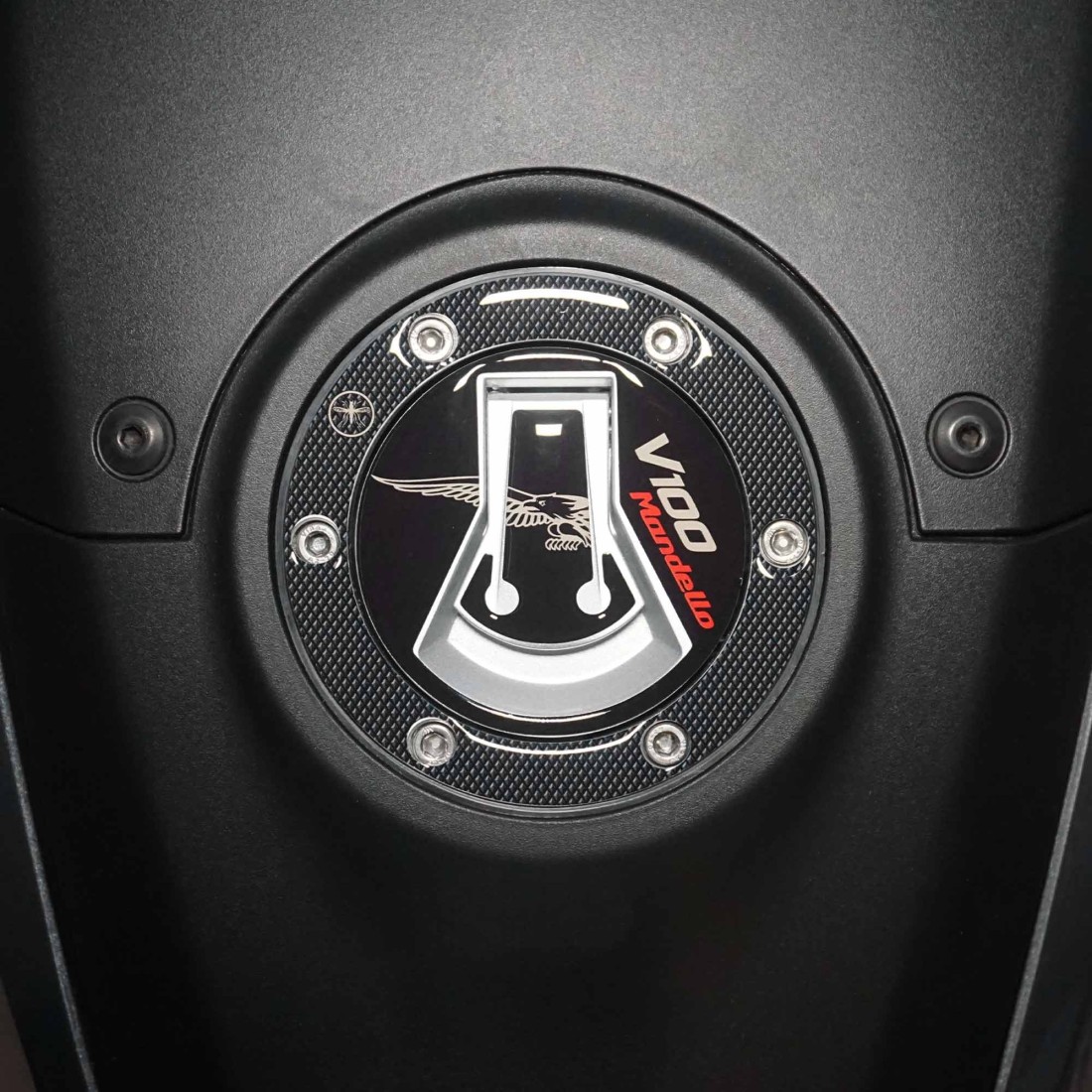 Unsere Aufkleber schmücken und reparieren von Stößen und Kratzern den Tankdeckel deines V100Sie sind waschbeständig, witterungsbeständig und UV-beständig.