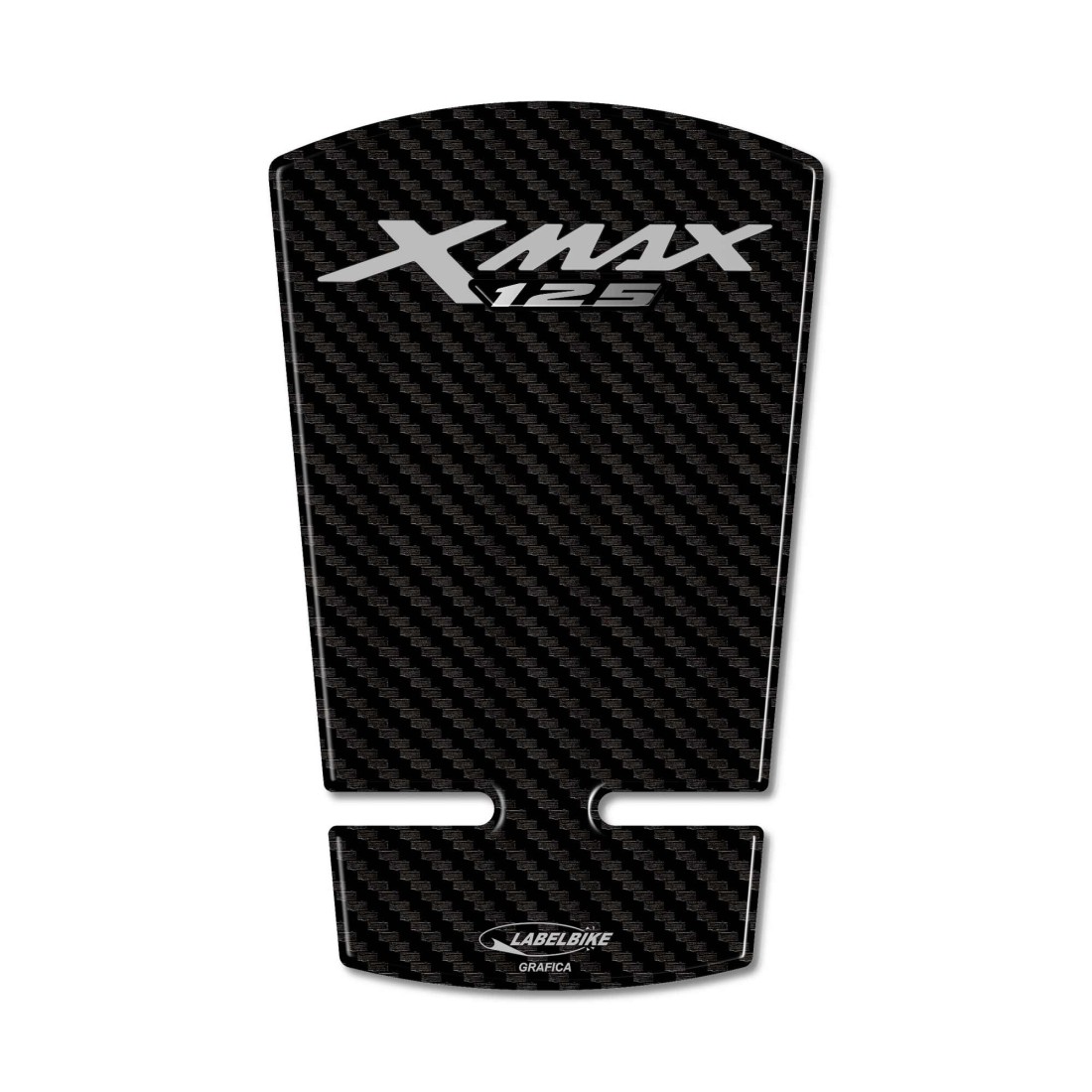Klebeschutz für den zentralen Tankdeckelbereich. Grafik mit Simil-Carbon-Basis mit grauem Xmax-Schriftzug und Farbvarianten in Blau, Schwarz oder Gold für den 125er-Schriftzug. Aufkleber mit 3D-Effekt aus Harz, Exklusiv für Labelbike® MADE IN ITALY.