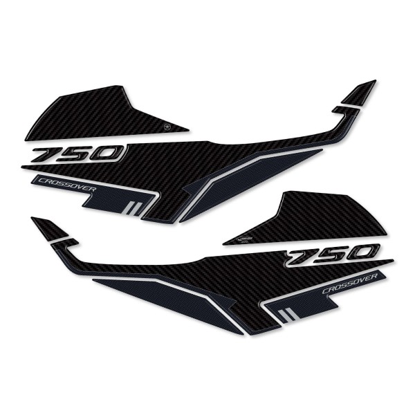 Protectores adhesivos de resina para los boomerangs de la zona lateral del Honda X-Adv 2021-25. Dos adhesivos 3D de resina de gel Exclusivo - Labelbike. Adhesivos 3D laterales izquierdo y derecho para X-Adv, MADE IN ITALY, realizados en resina con efecto 3D. Gráficos Simil Carbon con escritura X-ADV 750 Crossover. Decoran y protegen de golpes y arañazos los paneles laterales boomerang de tu X-ADV 2021- 2025, resistentes a los lavados, a la intemperie y a los rayos UV.