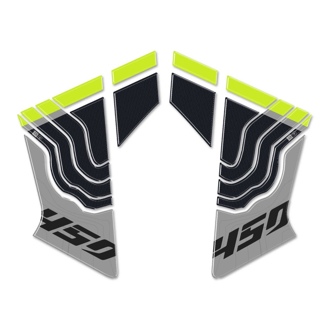 Protectores laterales de resina adhesivos para depósito de moto CFMOTO 450 MT 2024-2025 Pegatinas de resina 3D Exclusivo - Labelbike®. Pegatinas protectoras de arañazos para motos HECHO EN ITALIA Fabricados en resina con efecto 3D. Gráficos amarillos y rosas con letras 450.