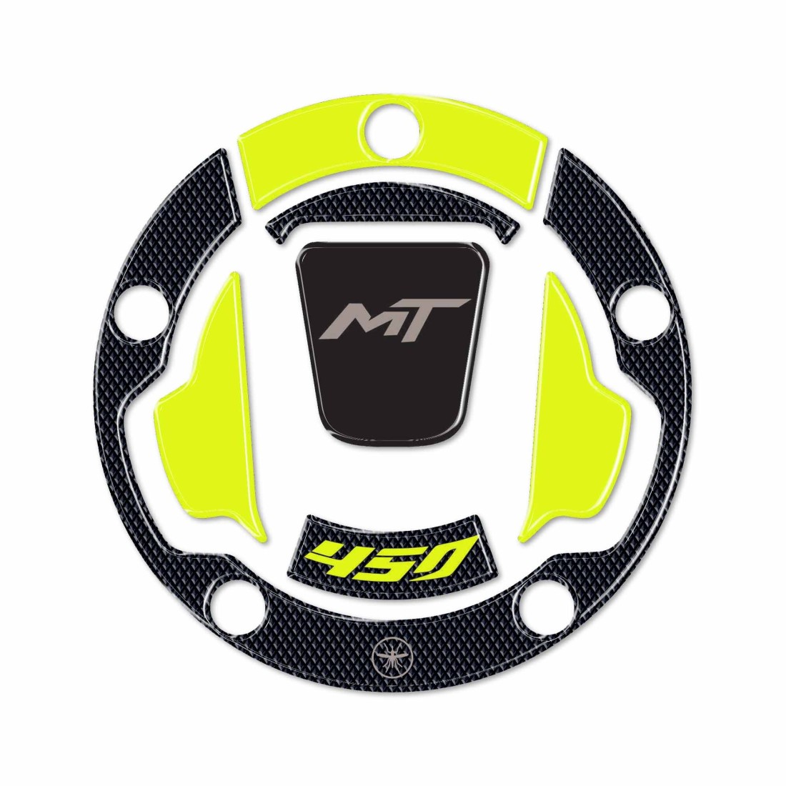 Protección 3D para tapón gasolina moto compatible con CF MOTO 450 MT 2024 a 2025. Adhesivo de resina para proteger y decorar el tapón de gasolina de tu MT 450. Dos colores, amarillo y rojo. Protección adhesiva de resina con efecto antideslizante y letras MT 450.