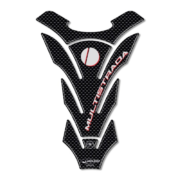 PROTECTOR DE DEPÓSITO DUCATI MULTISTRADA 620-1000-1100 Tamaño: 14 x 20 cm Protector de depósito modular en imitación de fibra de carbono Logotipo y letras grises y sombreado rojo Protege el depósito de tu moto de golpes y arañazos Resistente a la intemperie y a los rayos UV MADE IN ITALY Exclusivo - Labelbike.