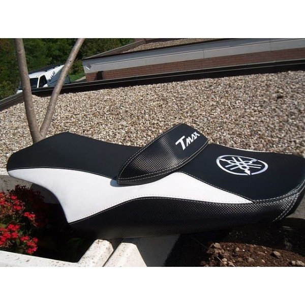 EXCLUSIVA FUNDA DE ASIENTO PERSONALIZADA PARA TU YAMAHA T MAX MODELO 2008/2016 - Esta funda de asiento ha sido diseñada para resistir al agua y a la intemperie gracias al material: SKY RAIN PROOF - Seguro que te ha pasado alguna vez que haces una frenada brusca mientras vas tranquilamente por la calle, ¿qué pasa? ...que inevitablemente todo tu peso se desplaza hacia delante, ¡¡¡por lo que tienes que recolocarte molesto en el sillín!!! Por eso decidí minimizar este problema poniendo antideslizante en la parte del asiento. Para hacer el sillín más atractivo, en la parte restante no puse un material banal parecido al original... ...sino un material parecido al carbono, ¡también llamado Carbon Look! ¡Para que tu Tmax parezca una bomba! la cubierta del asiento se puede personalizar con diferentes materiales de color y es posible añadir letras o logotipos personalizados.