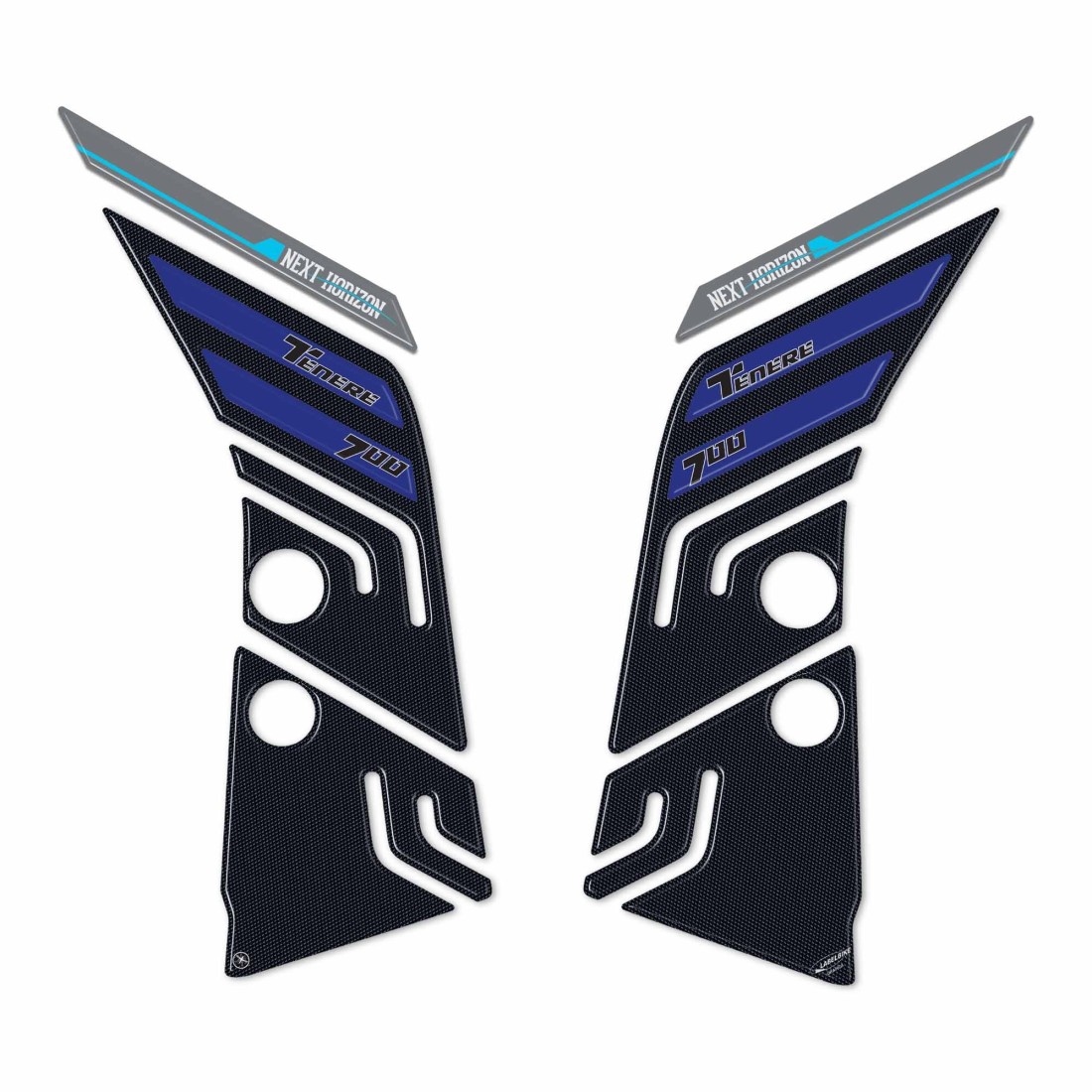 Protectores adhesivos de resina para la zona lateral del depósito de la moto Yamaha Tenere 700 2023. Dos adhesivos 3D de resina de gel Exclusivo - Labelbike®. Adhesivos para el depósito lateral de la moto HECHO EN ITALIA realizados en resina con efecto 3D.