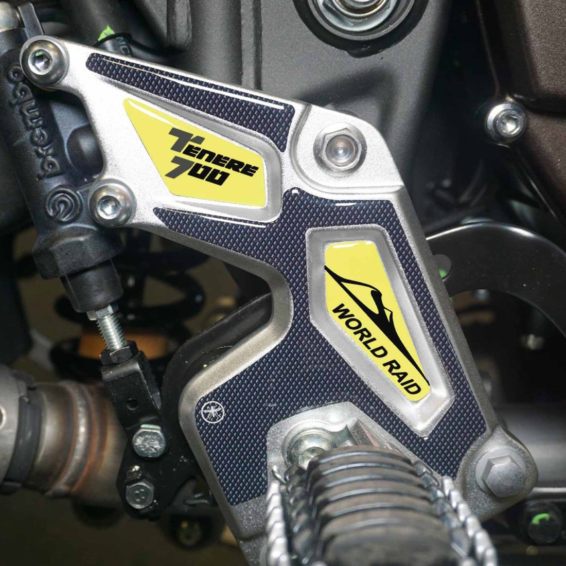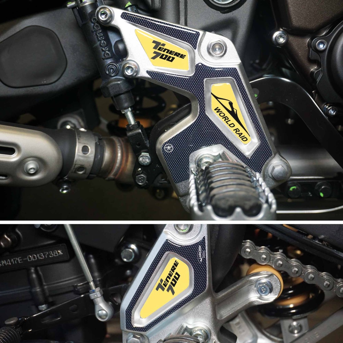 Protectores adhesivos de resina para talonera de moto Yamaha Tenere 700 2019-2022. Dos adhesivos para talonera de moto lado derecho e izquierdo en gel de resina 3D. Exclusivo - Labelbike. Adhesivos para taloneras laterales de moto. HECHO EN ITALIA Realizados en resina con efecto 3D. Resistentes al lavado, a la intemperie y a los rayos UV. Kit de pegatinas a medida para las estriberas derecha e izquierda: