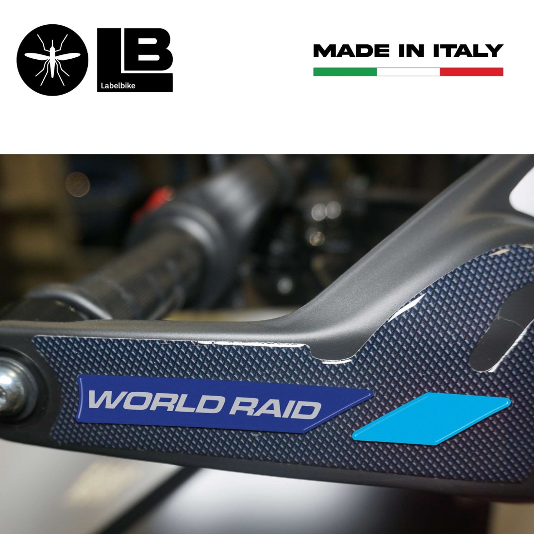 Protectores adhesivos de resina para paramanos de moto Yamaha Tenere 700 2022. Dos adhesivos para guardamanos de moto lado derecho e izquierdo en gel de resina 3D. Exclusivo - Labelbike®. Pegatinas para guardamanos Tenere 700 en color 2022. Pegatinas HECHO EN ITALIA realizadas en resina con efecto 3D. Gráficos con base y letras con efecto antideslizante. World Raid.