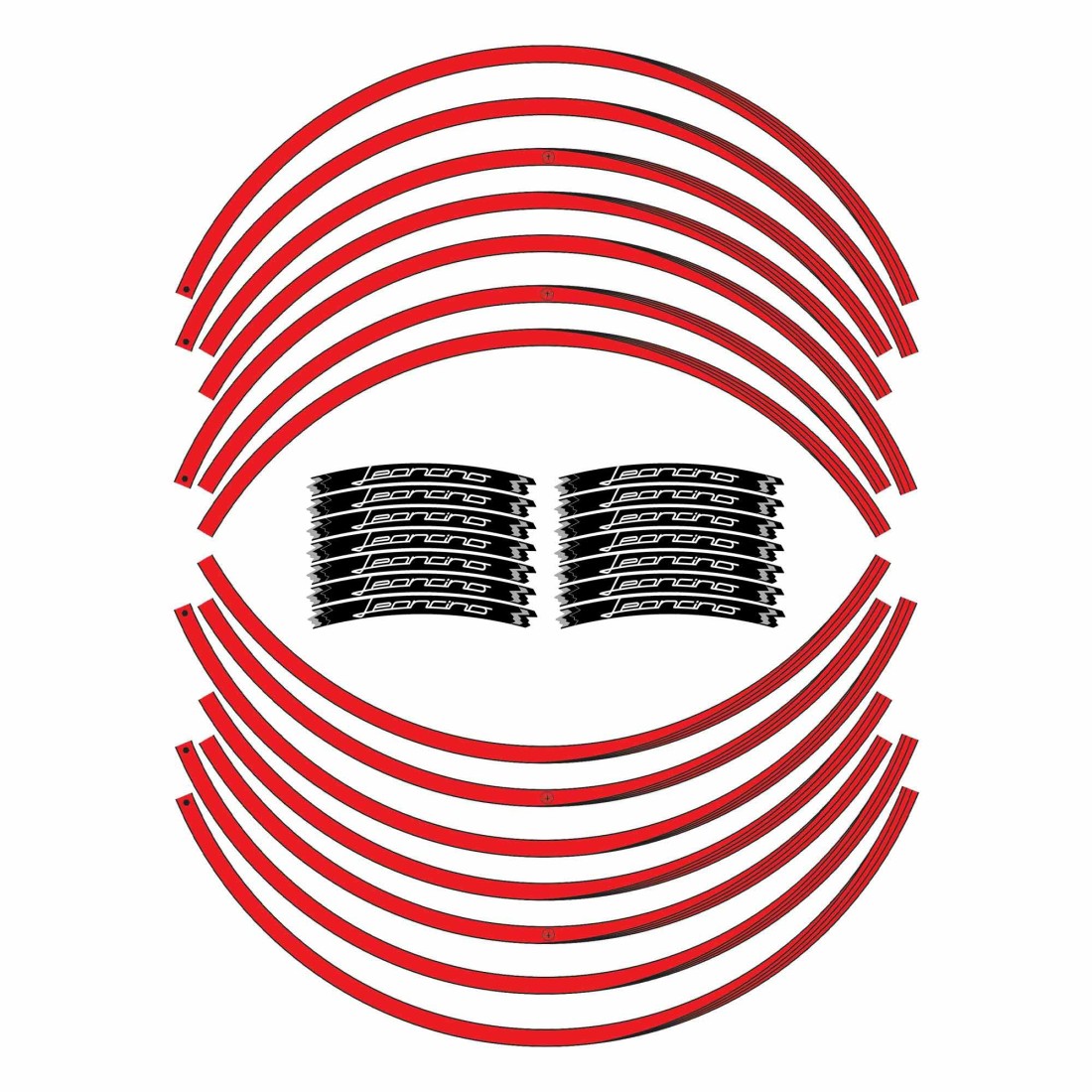 Adhesivos para ambas ruedas de moto, MADE IN ITALY. Gráficos base en Blanco, Negro o Rojo con detalles de la bandera tricolor italiana y letras Leoncino. Decoran y realzan la estética de tu Leoncino Benelli, resistentes a los lavados, a la intemperie y a los rayos UV.