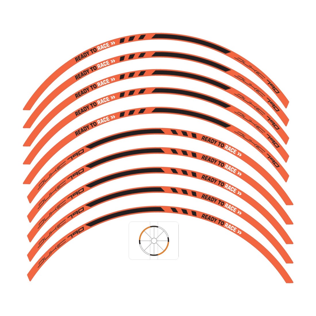 Juego de tiras adhesivas para bordes de llanta de 17" y 17" compatibles con todas las motos KTM Duke 790 (2018 a 2024).