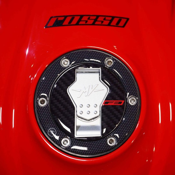 Protección adhesiva de resina para la tapa del depósito de las motos Mv Agusta F3 a partir de 2021. Adhesivo 3D de resina de gel Exclusivo - Labelbike®. Protector adhesivo del tapón del depósito HECHO EN ITALIA Realizado en resina con efecto 3D. Gráficos con base Simil Antislip y Carbon Look (efecto carbono) y escritura F3.