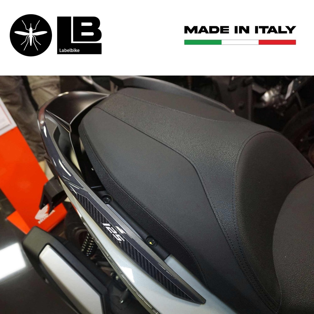 Protectores adhesivos de resina para las asas del pasajero Honda Forza 125 2023 . Exclusivo - Labelbike. Adhesivos para asas HECHO EN ITALIA Realizados en resina con efecto 3D. Gráficos en Simil Carbono y Negro con escritura 125. Adhesivos traseros protectores de gel 3D, protege tu Forza 125 de golpes y arañazos a partir de 2021, resistentes a los lavados, a la intemperie y a los rayos UV.