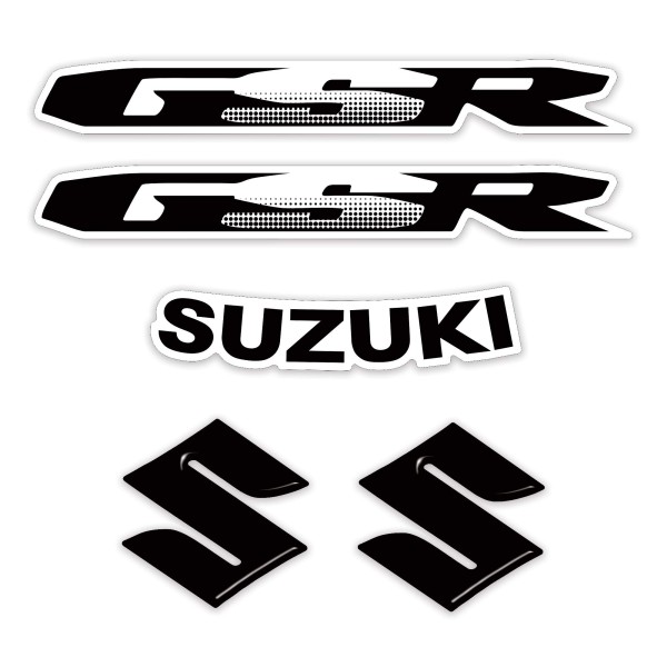 2 ESCRITOS 3D "S" negros de RESINA para el depósito + 2 escritos "GSR" negros sobre fondo transparente para los laterales del colín + 1 escrito "SUZUKI" negro sobre fondo transparente para el colín Resistente a los agentes atmosféricos y a los rayos UV MADE IN ITALY ADHESIVOS / STICKERS COMPATIBLES para SUZUKI GSR 600