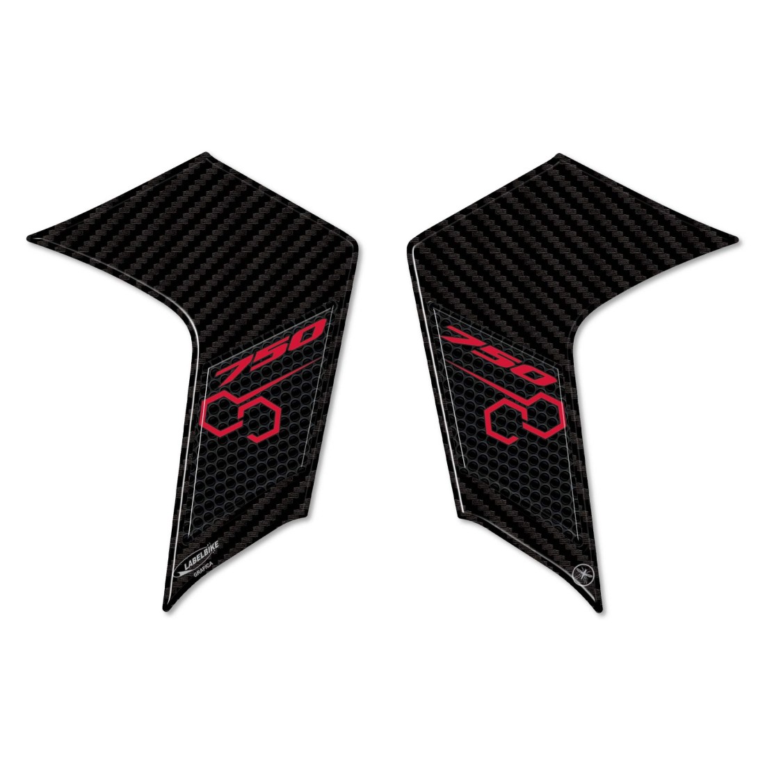 Adhesivos de protección de las aletas con revestimiento de resina 3D con base Carbon Look y detalles y letras en rojo o amarillo. 750.