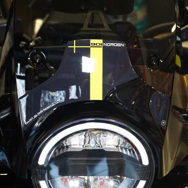 Protección adhesiva de resina para la zona del parabrisas de la moto Husqvarna Norden 901 2022. Adhesivo para moto fabricado en resina de gel 3D Exclusivo - Labelbike®. Placa de matrícula adhesiva 3D para parabrisas, MADE IN ITALY fabricada en resina con efecto 3D.