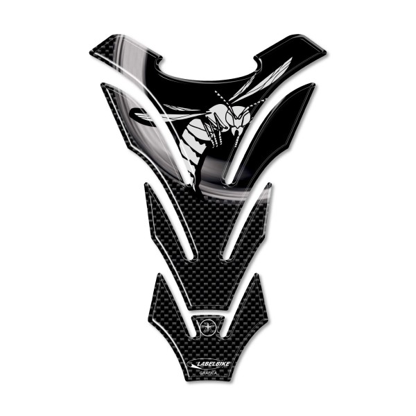 3D RESIN TANK PROTECTION FOR MOTORCYCLE HONDA HORNET UNIVERSAL GAS TANK PROTECTION Exclusive - Labelbike Tamaño: 14 x 20 cm WHITE HORNET WRITING - Black upper part - Carbon look remaining part Protege el depósito de tu moto de golpes y arañazos Resistente a la intemperie y a los rayos UV MADE IN ITALY