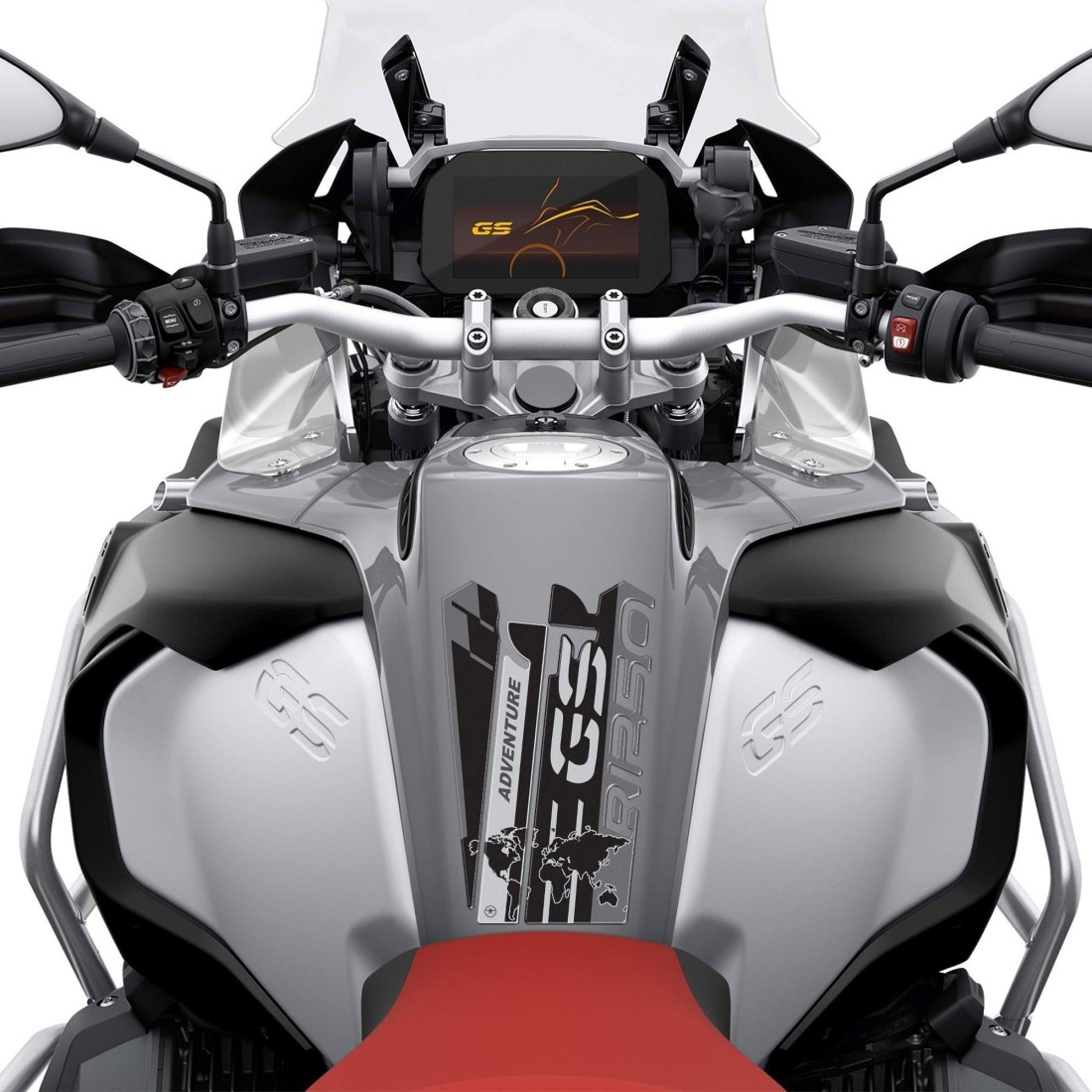 Protector de depósito Made in Italy, exclusivo de Labelbike, realizado en resina e impreso sobre material metalizado. Nuestros adhesivos decoran y hacen única tu GS Adventure R 1250 de 2019, protegen de golpes y arañazos y resisten a la intemperie y a los rayos UV.
