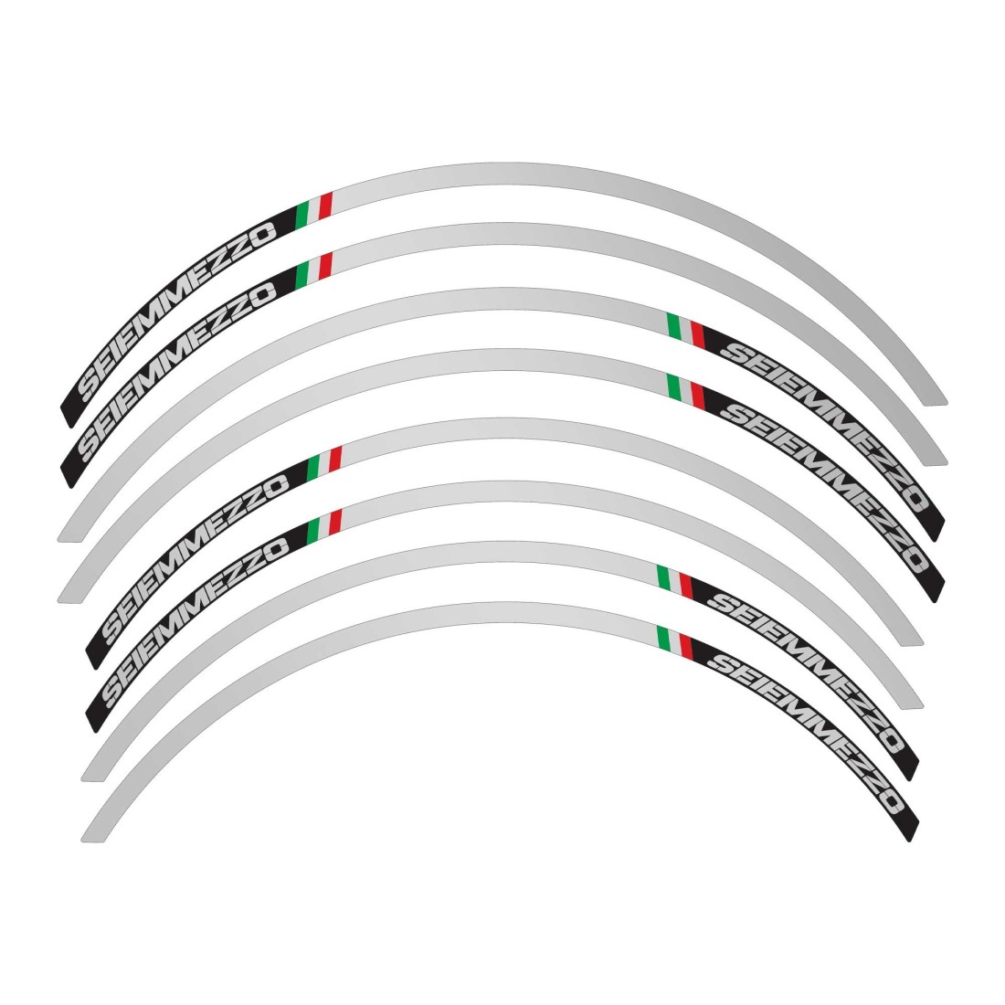 Kit de tiras adhesivas para llantas de 18" y 17" realizadas en material metálico. Adhesivos para llantas 18" delantera y 17" trasera Moto Morini Seiemmezzo.