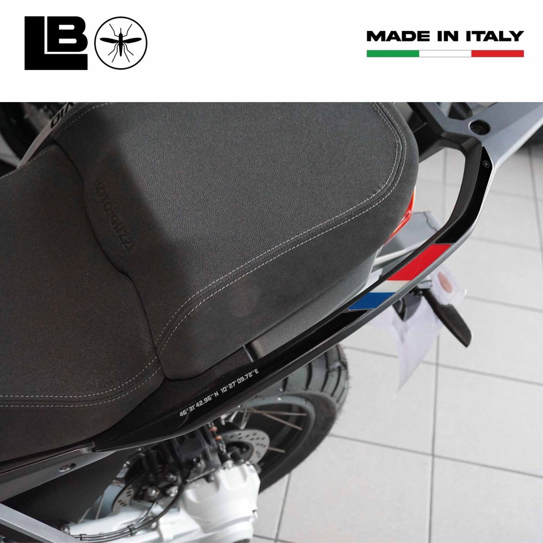 Pegatinas de resina de gel 3D, Exclusivo Labelbike® MADE IN ITALY. Hechos para decorar y proteger los manillares de tu moto. Pegatinas compatibles con Moto Guzzi Stelvio Duecento Tributo a partir de 2025.