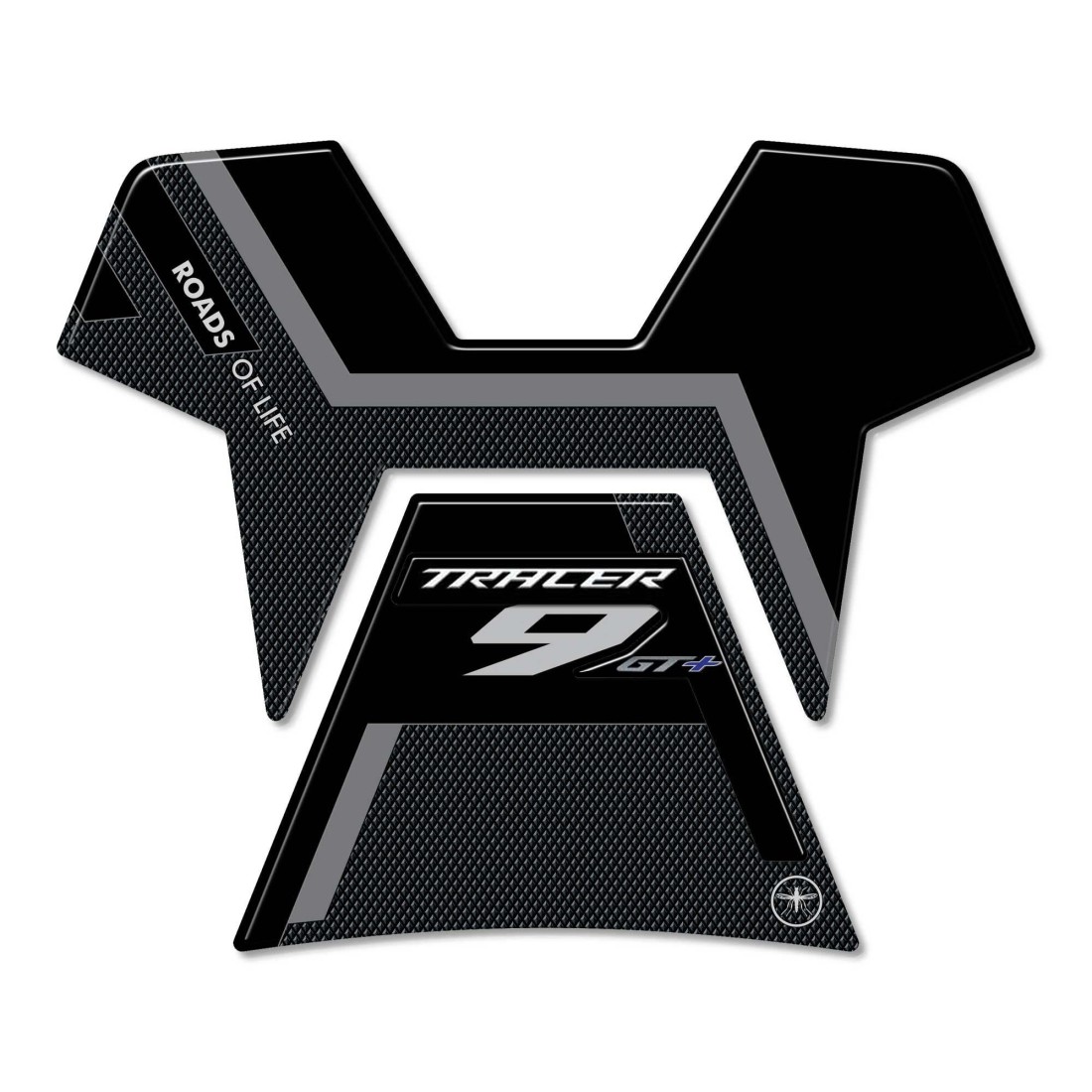 Adhesivo protector con base Carbon Look y letras Tracer 9 GT+ Roads of Life.