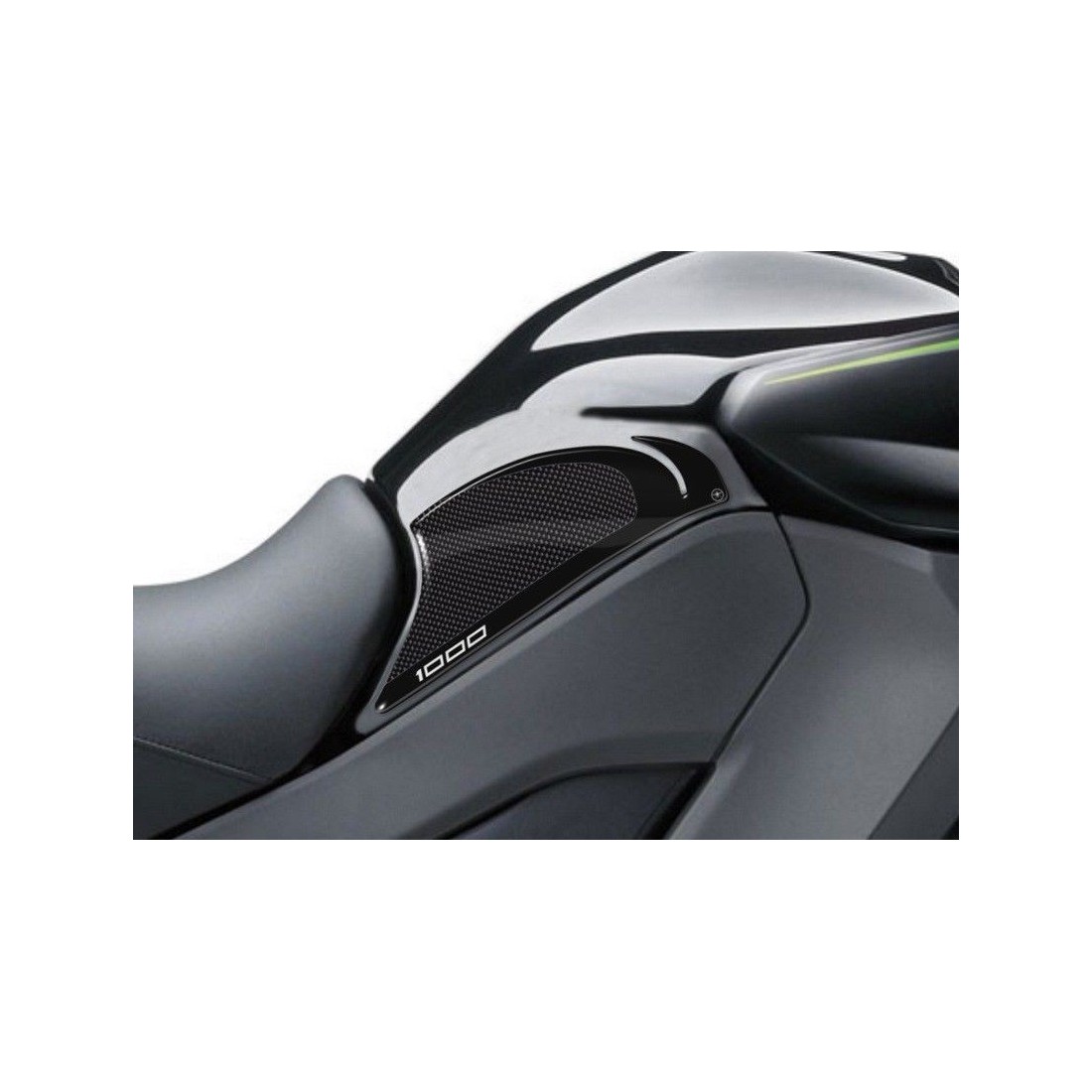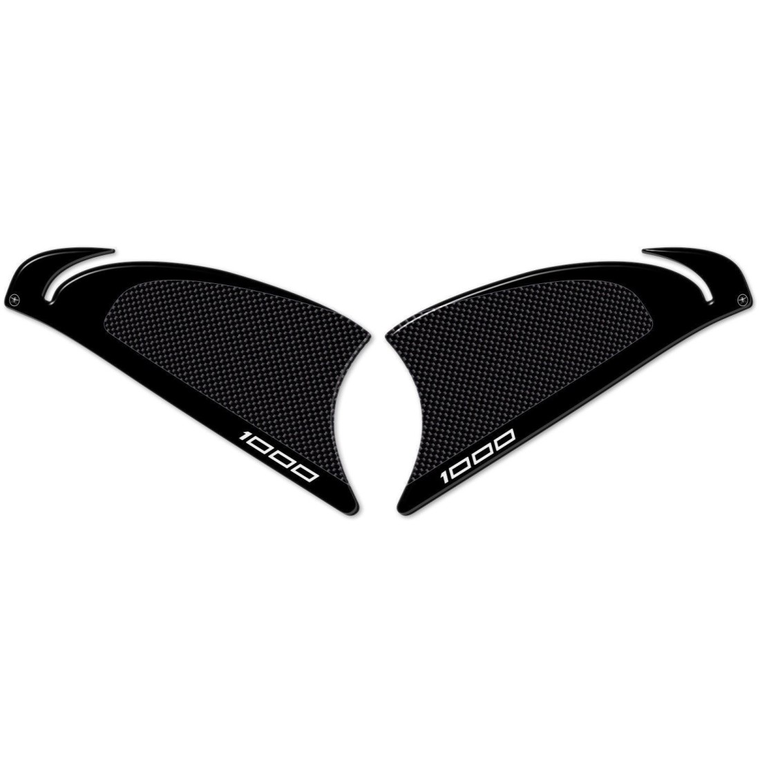 - PROTECCIONES LATERALES en negro y base símil carbono con inscripción 1000 y ribete gris