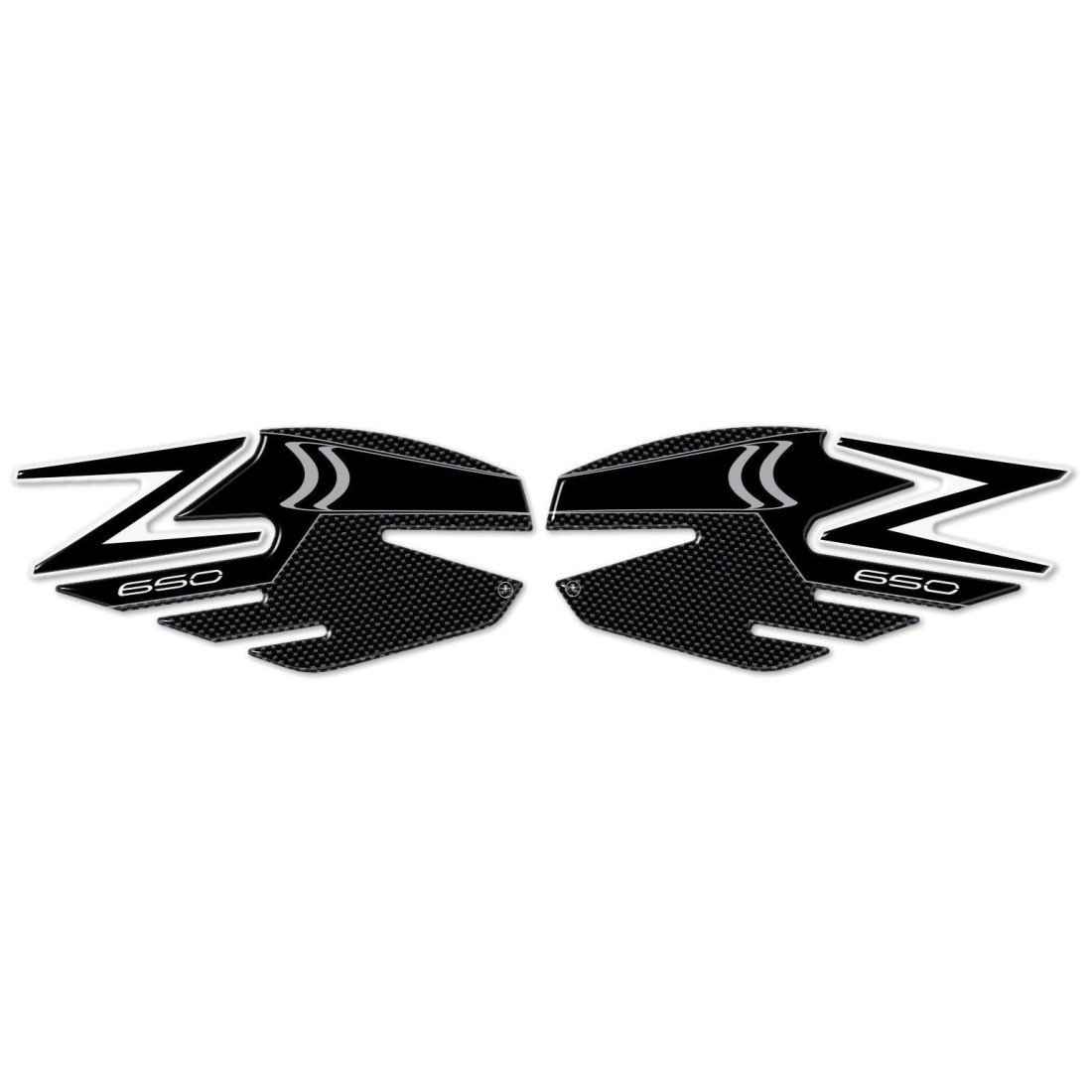- 2 adhesivos protectores laterales de rodillas con revestimiento de resina 3D para motos Kawasaki Z650 de 2017 a 2025.