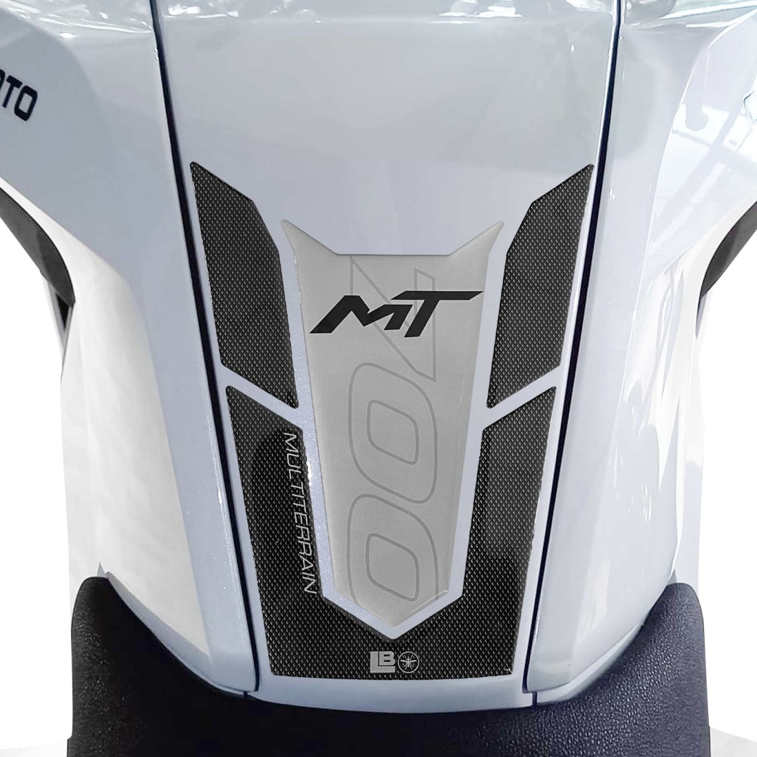 Protection de réservoir adhésive en résine pour réservoir de moto CFMOTO 700 MT à partir de 2024. Adhésif résine gel 3D Exclusif - Labelbike®. Protège-réservoir moto adhésif idéal pour MT 700.