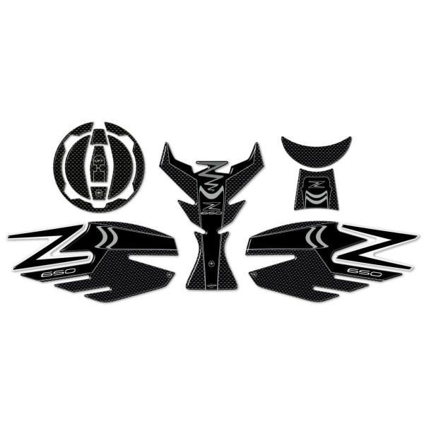 KIT 3D Resin Stickers / Autocollants compatibles avec Kawasaki Z650. Protections adhésives pour le réservoir + les côtés + le bouchon d'essence + la zone de la clé de contact.