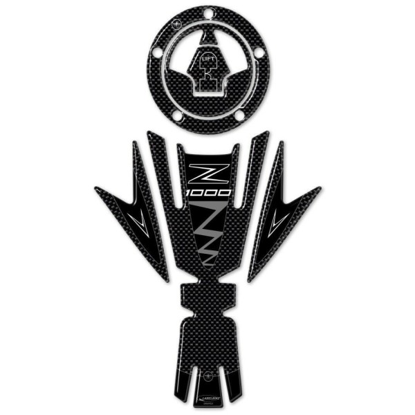 Kit d'autocollants 2 pièces en résine 3D composé d'une protection de réservoir et d'un bouchon Kawasaki Z1000 à partir de 2010