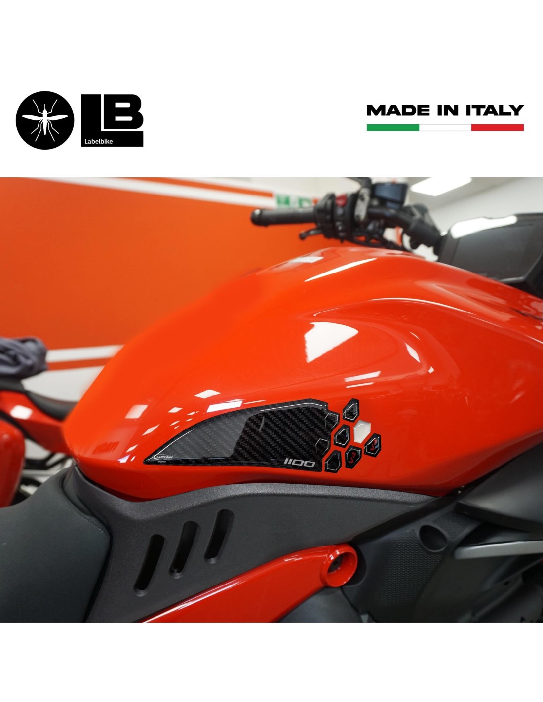 Autocollants Made in Italy, exclusivité Labelbike, en résine avecCarbon Look et lettrage 1100 V4.